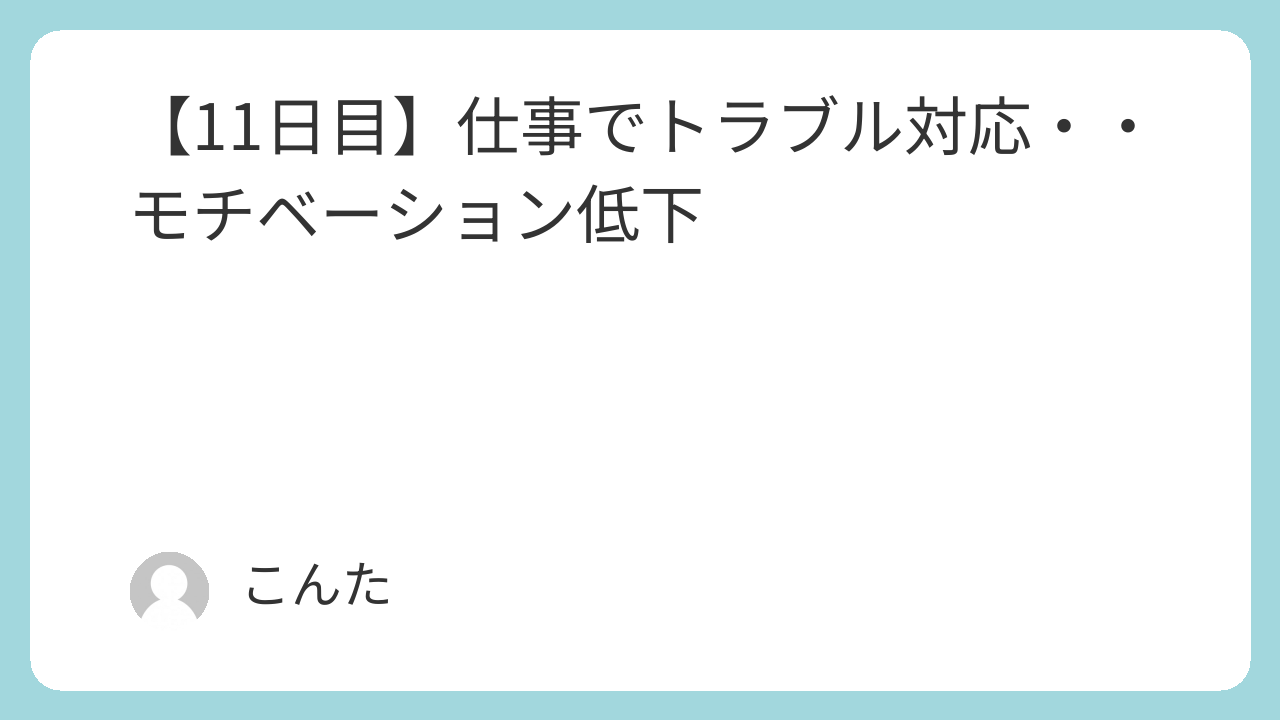 【11日目】仕事でトラブル対応・・モチベーション低下