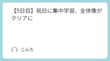 完璧を求めすぎず、自分のペースで続けることが大切だと分かりました。明日からは、週末に集中して取り組む作戦に変更してみようと思います。